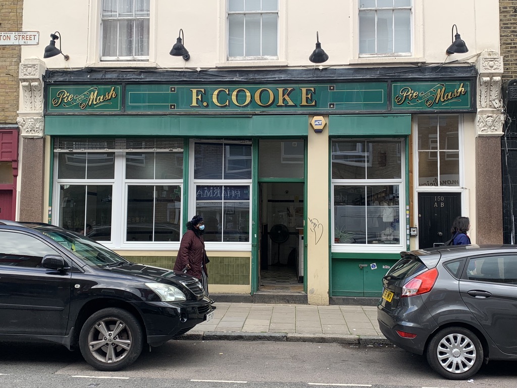 本次鎖定的是男女主角首次約喝茶的餐館-F Cooke Pie & Mash Hoxton,儘管內部的裝飾有調整過,店員也不是同一人(嗚),但是劇中兩人走出店門,招牌就很清楚是這一家無誤。