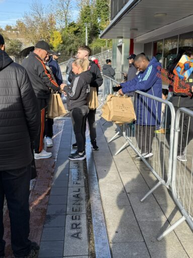 之一:我前面阿姨是Arsenal鐵粉,她說受爺爺影響,她家都是熱情支持者。拿到手環可以暫時離開隊列後,阿姨不僅跑去瘋狂採購一番,還分享自己在酋長球場結婚的故事,可說是非常友善的當地老前輩。由於長時間排隊,導致隊伍左鄰右舍都產生了一點友誼,阿姨跟Ødegaard聊天後熱淚盈眶,對我們說出經典名言:「我不是為了簽名感動!我是想到我阿公!」。給阿姨一個擁抱後,深深覺得槍手真是一個很溫暖的社群。