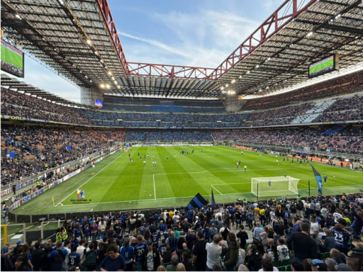 為了湊齊五大聯賽的觀賽體驗,義甲我原先鎖定了AC米蘭,因為很想去現場大合唱PERCHÉ TI AMO,但是跟其他行程互衝,所以最後選擇國際米蘭。我是看2025/5/18號,國際米蘭對戰拉齊奧(LAZIO)的比賽,當時的國際米蘭正處於一個動盪時期,在歐冠賽場上國際米蘭剛剛擊敗巴薩隆納,但是義甲卻被拿波里搶下榜首位置,比賽當天我右邊大叔全程聽收音機追蹤拿波里賽況,希望能再度超車,可惜多線作戰下最後仍是兩頭空,而且主教練Simone Inzaghi(小因扎吉)於賽季後還跑去利雅德新月。話雖如此,當天可以見識到近年來陣容十分齊全的國米,尤其是我很喜歡的Çalhanoglu,感覺還是很不錯的。